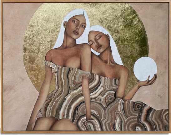Exploring archetypes, both timeless and contemporary, she examines her own relationship to what it means to be a woman and delves into the many identities of femininity through her work: the mother, the sister, the daughter, the inner child, the leader, the follower, the warrior, the descendant, and the forebear. In the beauty of the divine feminine, there is something sublime, serene.