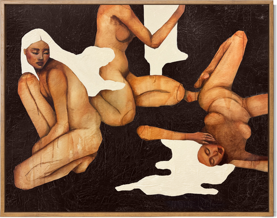 Her work explores the subconscious relationship between femininity and self-perception, portraying women as giantesses—sculptural and powerful in their presence.